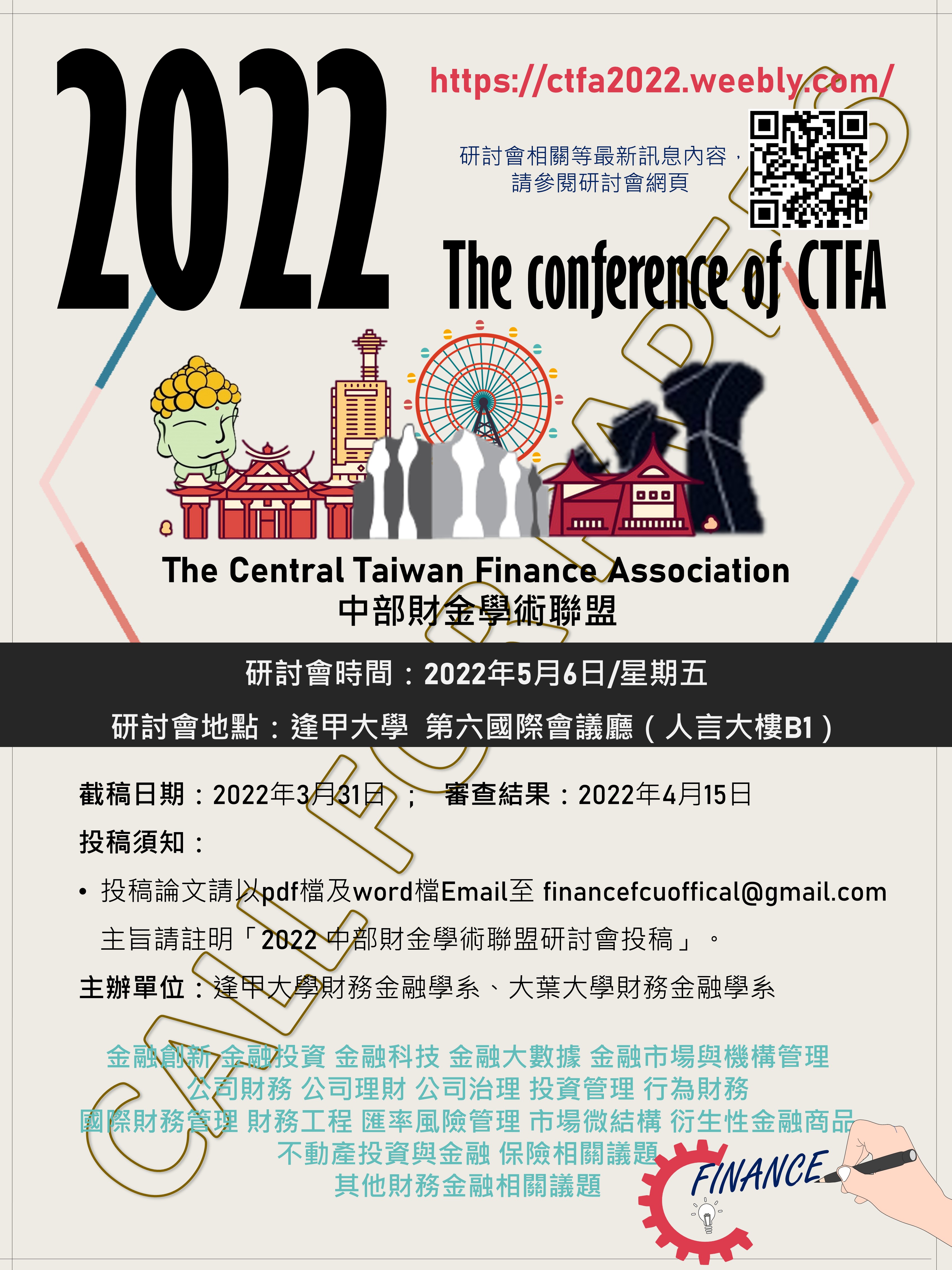 逢甲大學財務金融學系與大葉大學財務金融學系主辦「2022中部財金學術聯盟研討會」徵稿相關資料